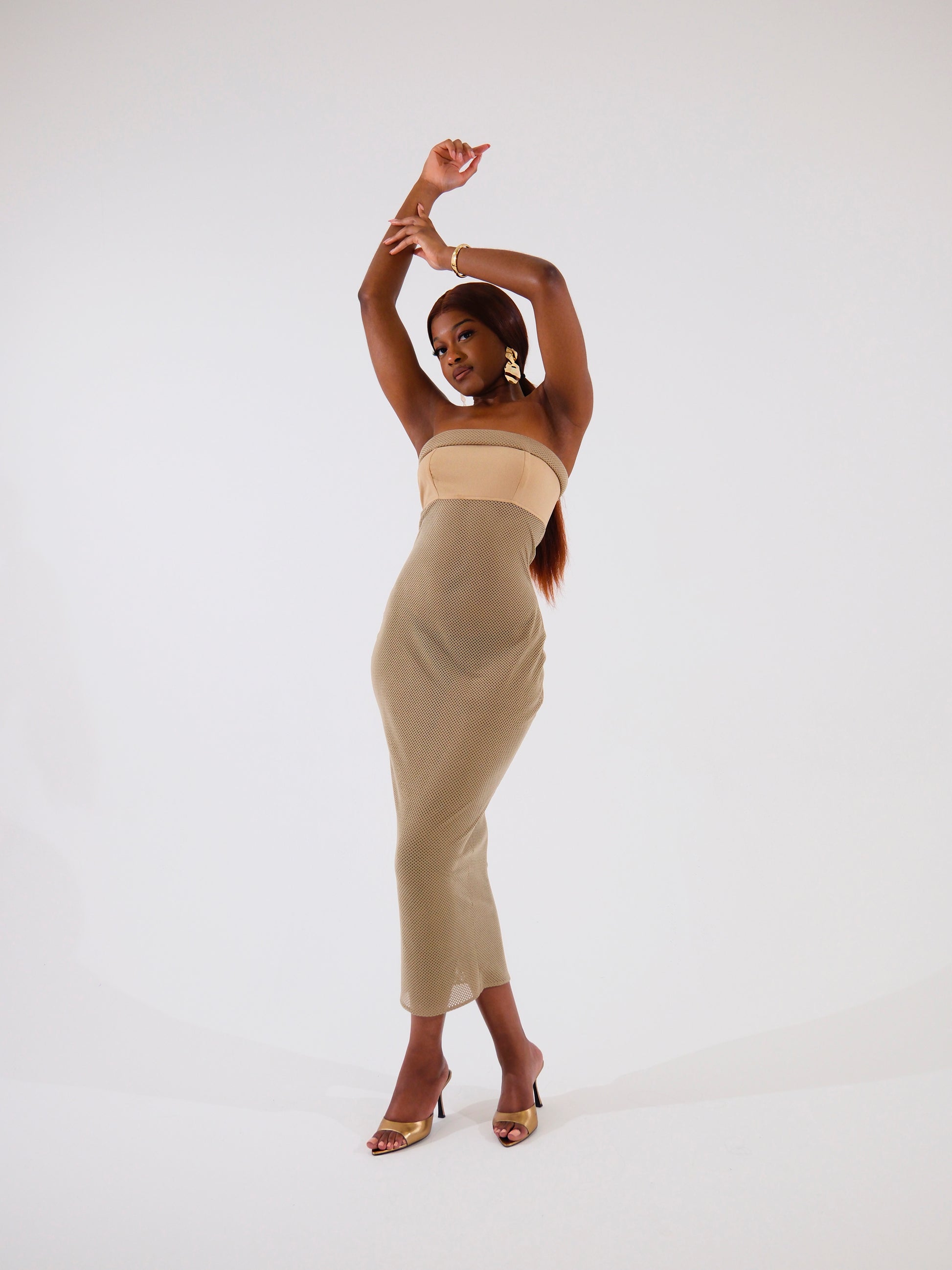 Buzio - Bandeau Cream Dress in Cream and Net Fabric